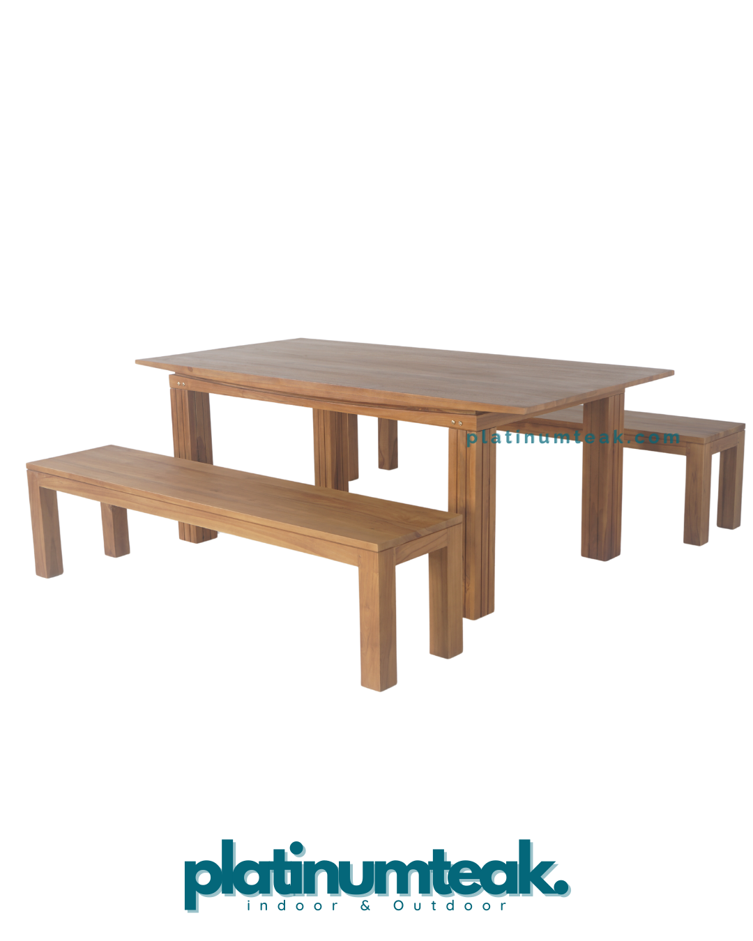 Elevate your outdoor living experience with the Timberline Teak Bench Set, a perfect blend of natural elegance, durability, and functional design. Crafted from premium Indonesian teak wood, this dining set features a spacious rectangular table paired with two sturdy benches, ideal for family gatherings, garden parties, or casual outdoor meals.